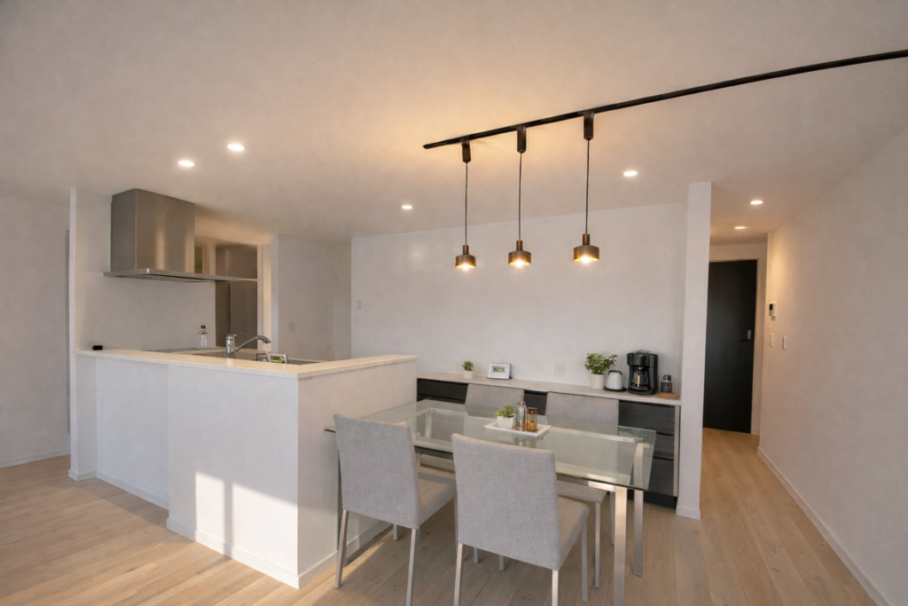 常に片付いた美しい玄関が、帰宅した家族を優しく迎え、心のゆとりを生み出します。 -