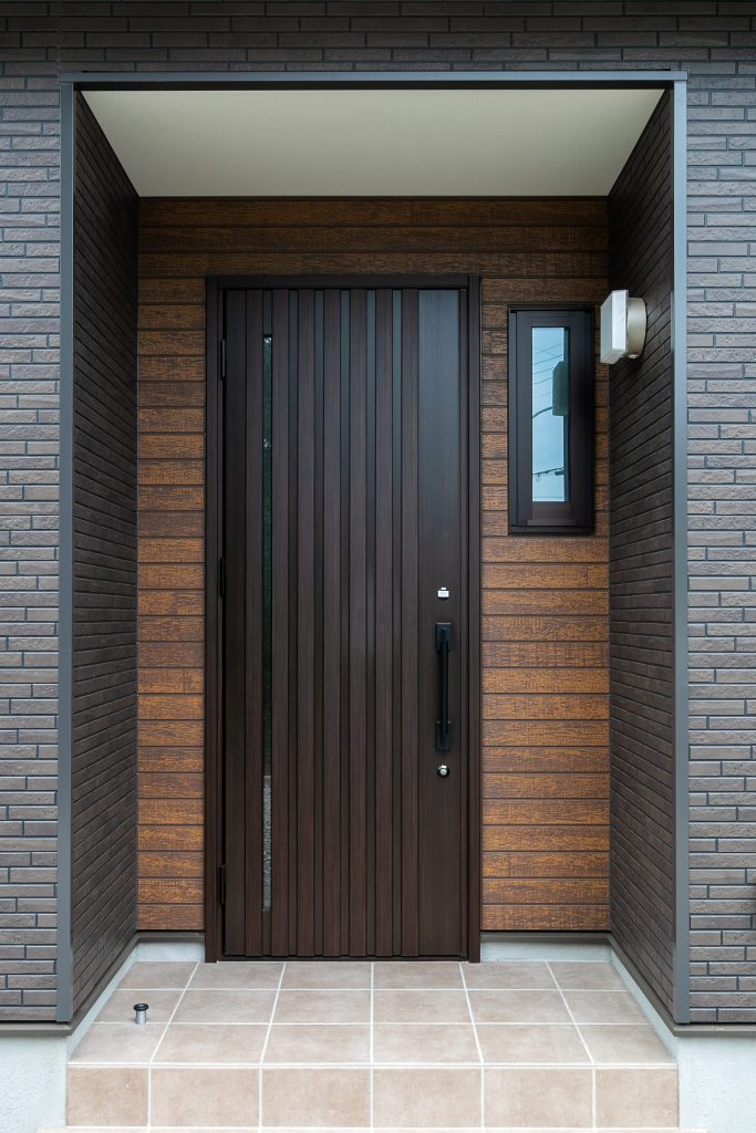 玄関ポーチの木目がアクセント♪