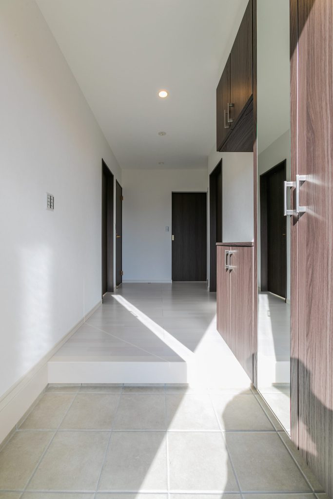 玄関ホールには、靴を収納するための棚はもちろん