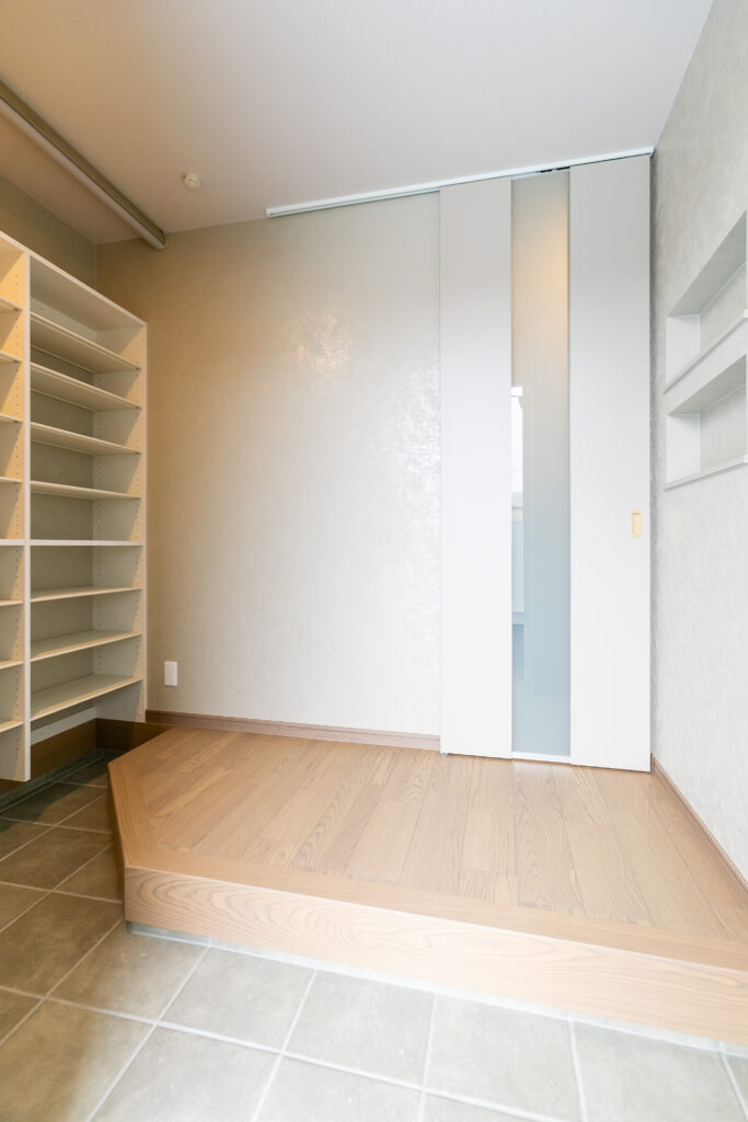 ・玄関横の納戸+リビングとつながる便利動線