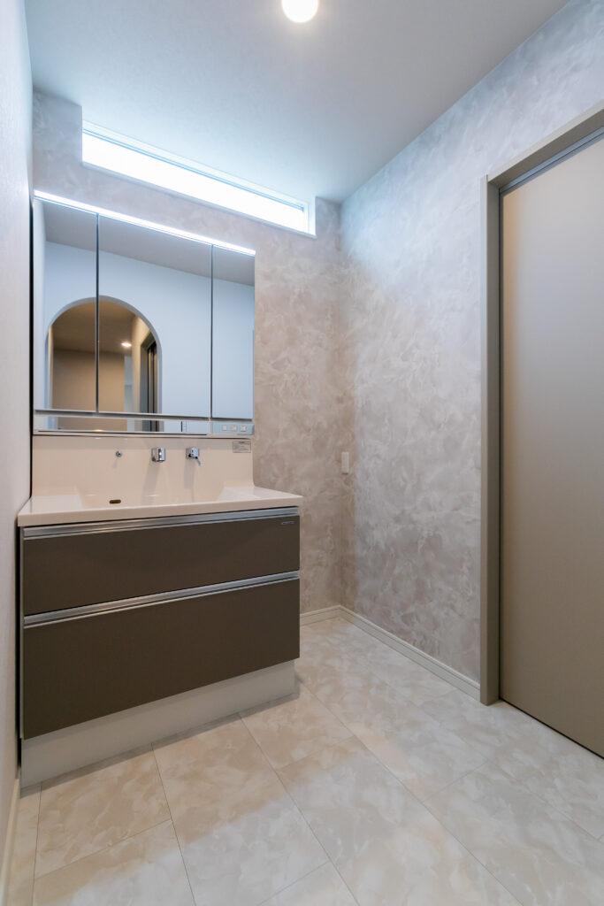 ・洗面室と独立した脱衣室で、家族が同時に使いやすい水まわり