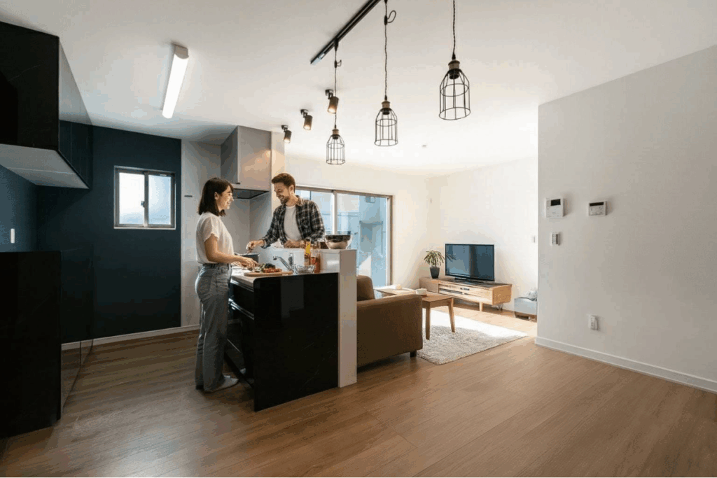 ・リビングが生活の中心に位置しておりキッチンから子どもの成長を見守れる