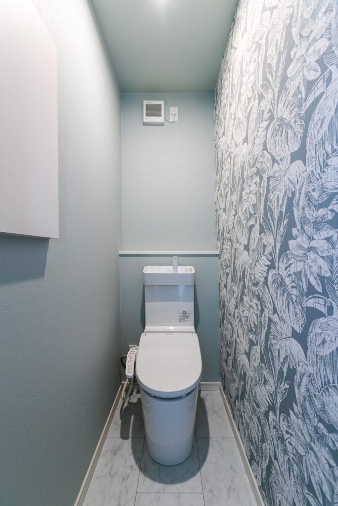 アクセントクロスが目を引くおしゃれなトイレ♪